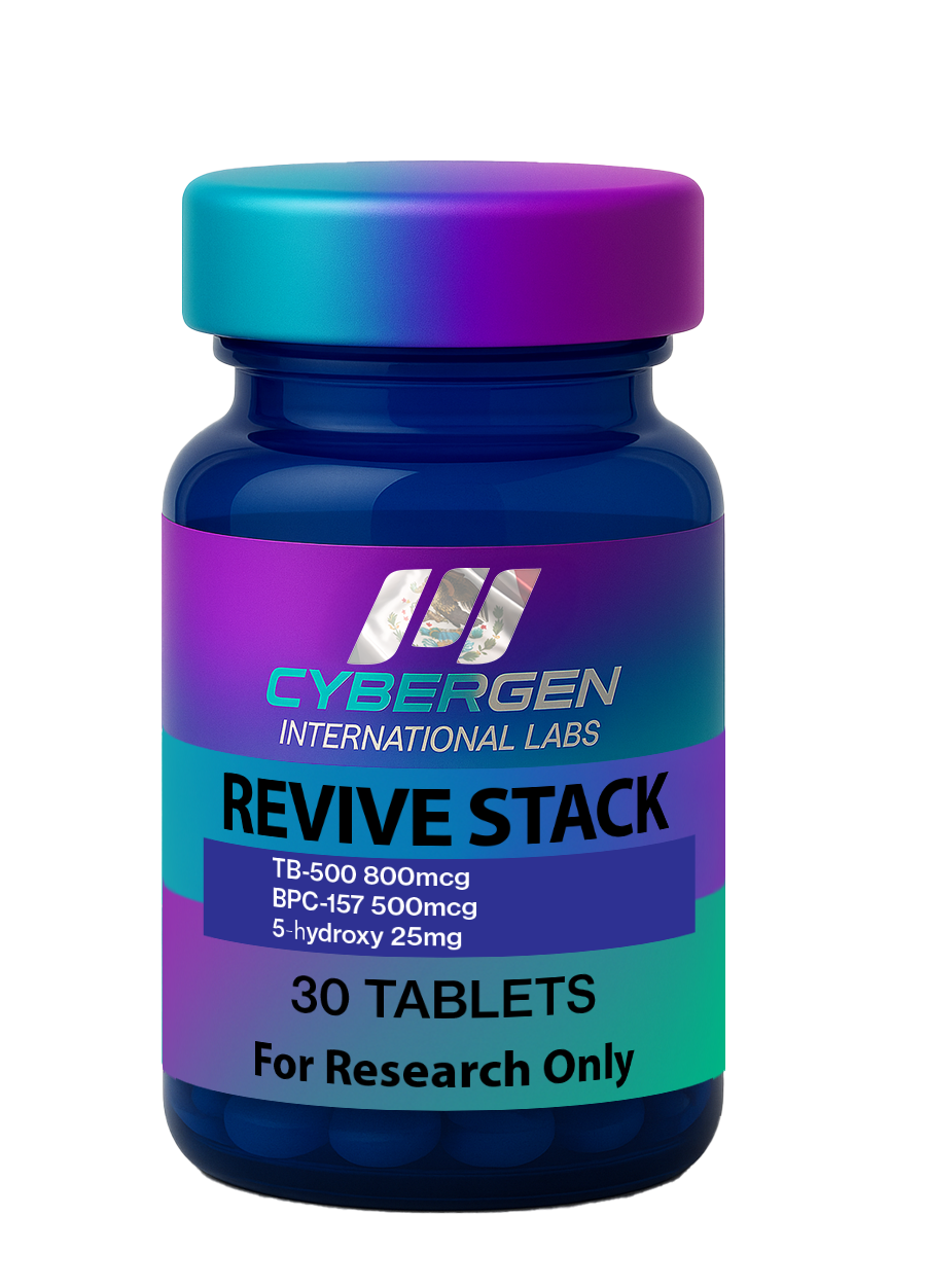Revive Stack es una formulación de investigación compuesta por tres elementos que combina TB-500 (800 mcg), BPC-157 (500 mcg) y 5α-Hydroxy-Laxogenin (25 mg) por tableta, diseñada para uso controlado en laboratorio e investigación in vitro.